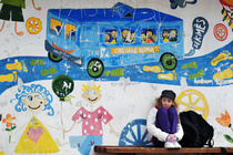 mėlynas autobusiukas