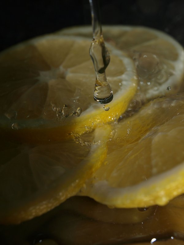 Nuo pat pirmo bandymo fotografuoti labai patiko paveiksluoti lašus. Dabar lauke apsiniaukę, nelabai ką įamžinsi. Šiandien kilo idėja lašus pasidaryti pačiai. ;) Šalia kriauklės pasistačiau stalinę lempą, prisipjausčiau vaisių ir gerą valandą pilsčiausi vandeniu. :D