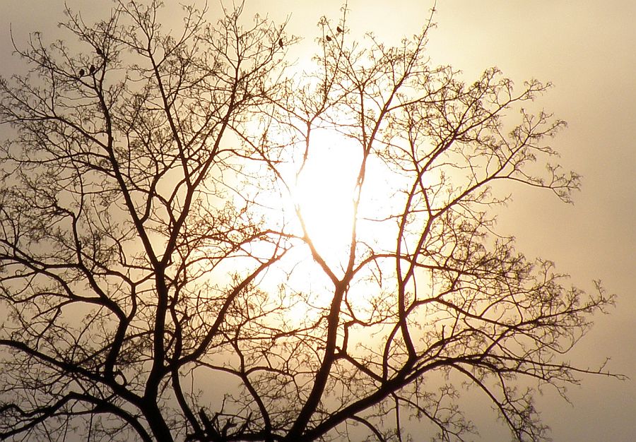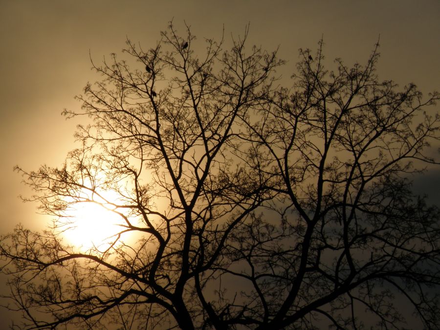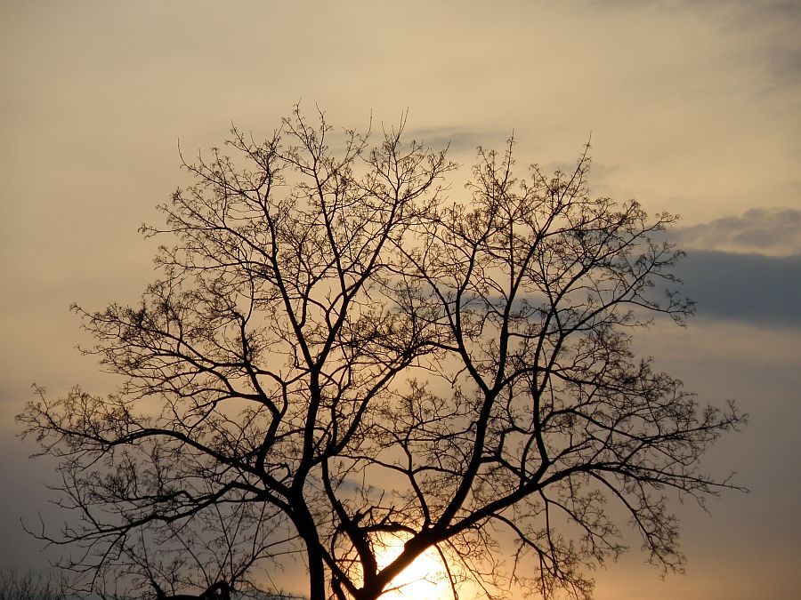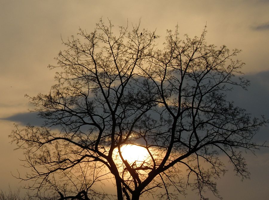 Lanku saulelė leidosi tarp medžio šakų kaip už kokių užuolaidų :) pasislėpusi...