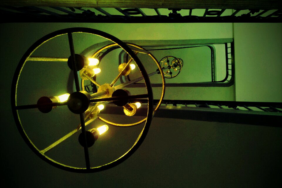 per pusę nukirsti objektai, langai, laiptų
