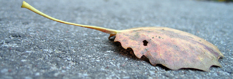 Mažas vienišas lapelis. Stiebėlis vis dar siekia saulės.