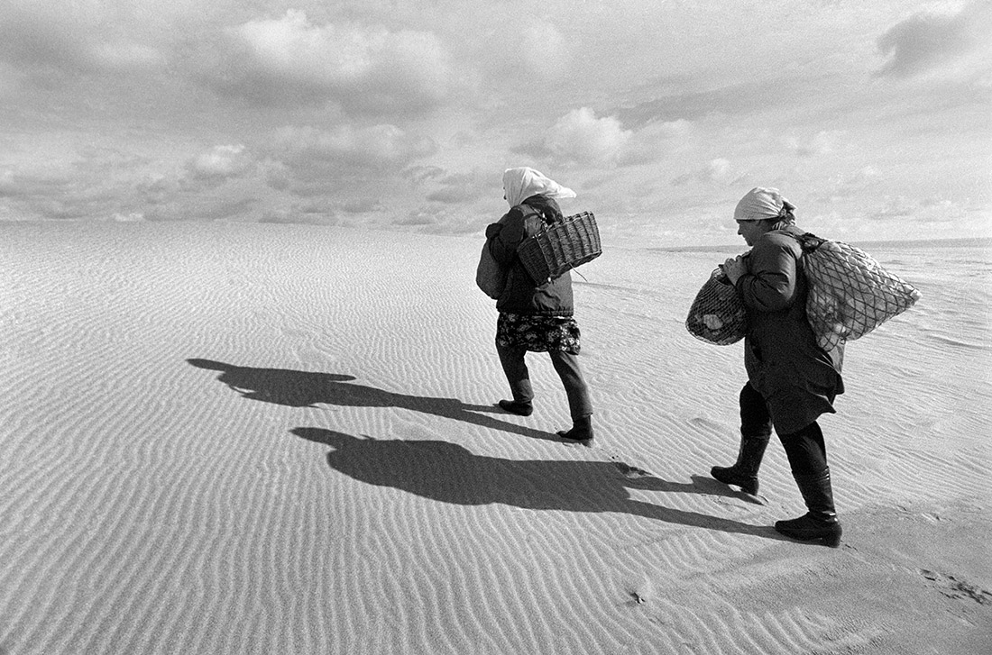 Moterėlės apsipirko Nidoje ir varo per kopas namo i Rybačį (Kalingrado srityje)...