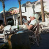 14/ šviesa daugiau neužsakyta, o pasidaryta :) Ten visi prekeiviai tokiam pavilijone po stogu sėdi, prieblanda visur, man su savo 160 ISO ir F3.5 nėr ka veikt beveik. Žiuriu šitas diedukas sėdi, į nugarą saulė spigina, o veidas pavėsy.. negerai... na išsipakuoju aš savo įrangą, demonstratyviai kelis kart panosėj eksponometru pamojuoju, taikausi, paeinu į šoną, dar taikausi... diedukas jau šiek tiek užsiparinęs ir mane įtartinai stebi. Tada aš lėtai apeinu prekystalius, jis apsisuka, žvilgsniu sekdamas mane - ir vuolia! - personažas puikiai apšviestas pro plyšį stoge krentačios šviesos... belieka tik mikliai pasimatuot eksponometru, susivest ryškumą ir fotkint, kol personažas ir jo draugai nepradėjo rėkt "bakšyš, bakšyš!" (tipo, duok arbatpinigiu!), kaip jau įprastai tokiose situacijose būna :)